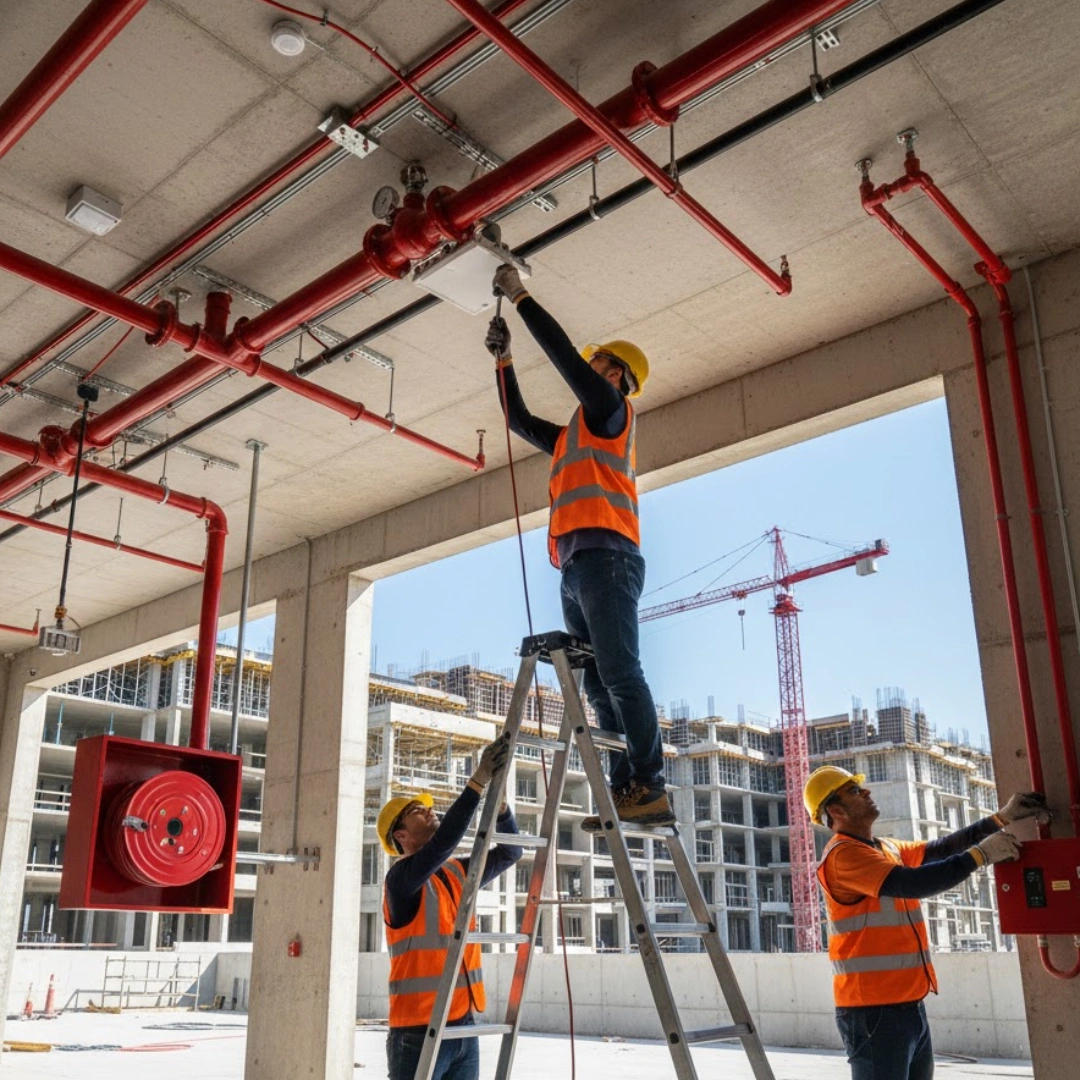 Complete fire safety solutions including sprinkler system installation, fire pump setup, advanced fire alarm systems, emergency and exit lighting, full civil defense approvals, and integrated fire suppression systems for maximum protection and compliance.